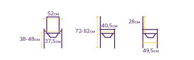• высота — от 72 до 82 см